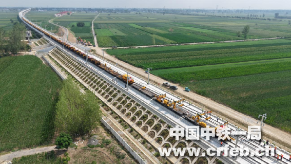 中鐵一局淮宿蚌城際鐵路鋪軌工區負責人楊波介紹,此次鋪軌引進的國內最先進CP500Z本鄰雙線鋪軌機組,具有鋪設速度快、安全性能好、精度高等優勢,可實現單線鋪軌、跨線鋪軌及左右線同時鋪軌,單日最快單線鋪軌進度可達9公里。按計劃,全線鋪軌任務將于今年10月底完成。