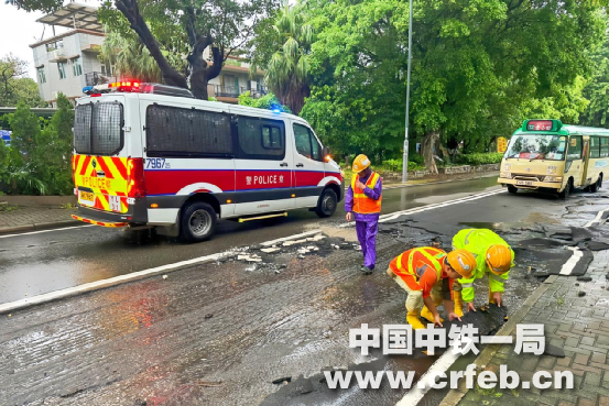 在得知多地因黑雨出現嚴重水浸和道路損毀后,項目立即啟動應急預案,30名精干救援人員,10輛工程車以及抽水機、發電機、水泵等專業設備組成的搶險救援隊,分組出發火速趕往元朗、荃灣、西貢、觀塘等重災區展開搶險工作。