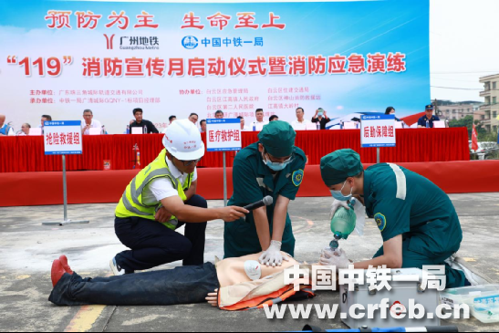 廣東珠三角城際軌道有限公司、中鐵一局一公司、白云區(qū)應(yīng)急管理局、住建交通局質(zhì)量安全監(jiān)督站、白云區(qū)神山消防救援站,第二人民醫(yī)院等單位負(fù)責(zé)人及項(xiàng)目參建人員共100余人參加此次消防演練活動(dòng)。