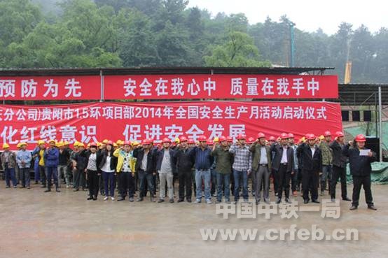 重慶分公司機(jī)關(guān)在貴陽人員與1.5環(huán)項目部員工、農(nóng)民工一起宣誓(王玉葉攝)