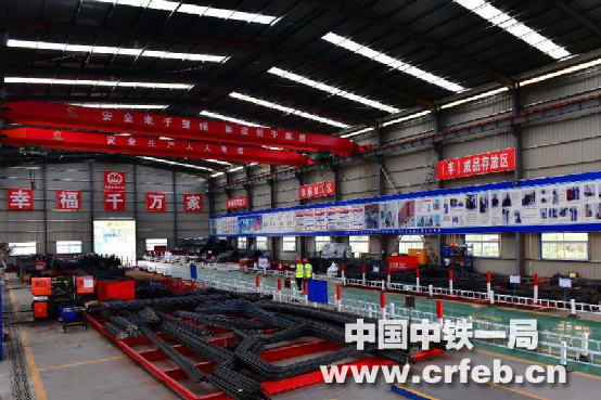 作為臨建標準化建設的重要標志,桂鐘5、8標段的鋼筋加工廠,廠房高度12米,作業場地平整、硬化。加工場內醒目位置都設置工程公示牌、施工平面布置圖、安全生產牌、消防保衛牌、管理人員名單及監督電話牌、文明施工牌等明示標志。加工廠內按照功能設立了原材料堆放區、鋼筋下料區、加工制作區、鋼筋籠預拼接區、半成品堆放區;還設置安裝了龍門數控切割機、全自動數控液壓鋼筋調直切斷機、鋼筋快速鋸床、數控鋼筋彎曲機、數控鋼筋調直機、數控鋼筋彎箍機、數字化工業焊接機器人、數控滾籠焊機、數控立式彎曲中心、全自動數控彎箍機、鋸切套絲打磨生產線等等機械化、數字化設備并懸掛著機械操作安全規定公示牌和設備標示牌。這些工裝工藝標準化為項目部標準化建設賦能。