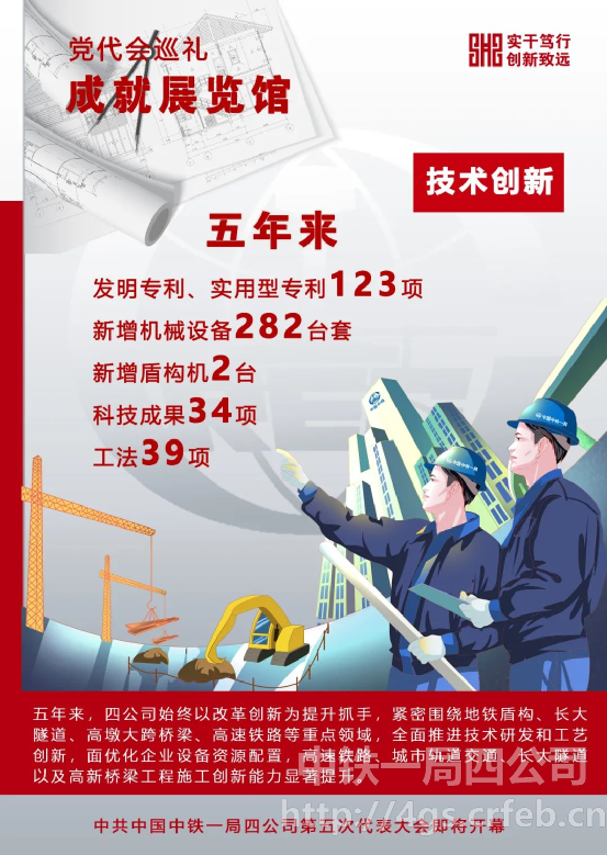 五年來,四公司以科技為第一生產(chǎn)力的理念,獲得了顯著技術突破和技術成效。新增機械設備282臺套,總功率4.41萬千瓦;新增盾構機2臺。完成科技成果34項,其中省部級28項;共完成工法39項,其中省部級工法22項;榮獲發(fā)明專利、實用型專利123項。期間連續(xù)3年獲得股份公司20強,先后榮獲“中央企業(yè)先進集體”“中國中鐵先進三級工程公司”“陜西省建筑業(yè)AAA級信用企業(yè)”等榮譽稱號。培育專家型技術人員隊伍,成立了專家創(chuàng)新工作室,推動企業(yè)重難點工程技術攻關。這些突破和榮譽,是企業(yè)改革創(chuàng)新紅利的不斷釋放,也是高質(zhì)量發(fā)展取得積極成效,為國企改革三年行動的收官之年、決勝之年夯實勝利基礎。