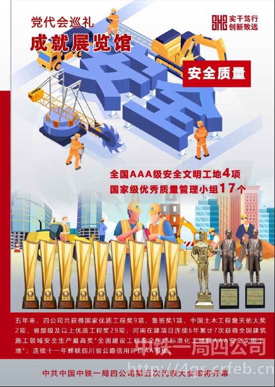 第四次黨代會(huì)以來(lái),中鐵一局四公司安全質(zhì)量工作以質(zhì)量安全文化為引領(lǐng),始終堅(jiān)持以問題為導(dǎo)向,全面落實(shí)各級(jí)安全質(zhì)量責(zé)任,全面推進(jìn)“管監(jiān)”責(zé)任落實(shí),標(biāo)本兼治,構(gòu)建起了較為完善的安全質(zhì)量管理體系,安全質(zhì)量工作實(shí)現(xiàn)了持續(xù)穩(wěn)定可控,創(chuàng)優(yōu)創(chuàng)譽(yù)成績(jī)斐然。