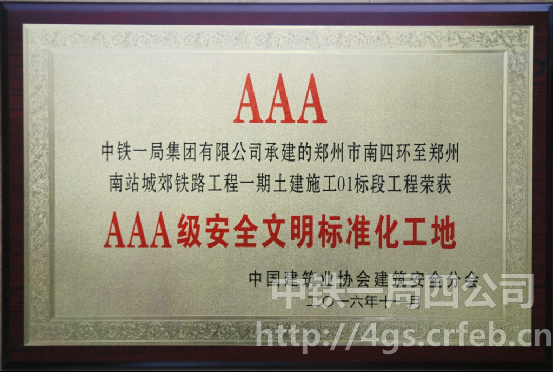 榮獲全國(guó)“AAA級(jí)安全文明標(biāo)準(zhǔn)化工地”