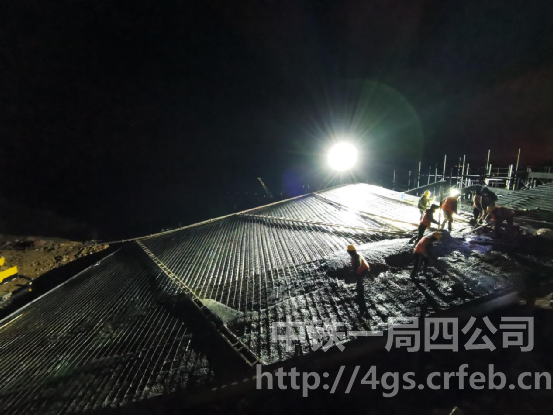 為確保鋼架橋首段面板砼澆筑順利,各方統(tǒng)籌規(guī)劃,現(xiàn)場施工嚴格按照專項方案進行,現(xiàn)場技術負責人對每道工序嚴格審核、牢牢把關,對基礎施工、鋼結構吊裝和焊接、腳手架搭設、混凝土澆筑等環(huán)節(jié)進行層層把控,確保澆筑施工質量和安全。為保證冬季澆筑施工質量,采用混凝土入模前測溫,澆筑完成后及時覆蓋保溫棉被等措施。項目嚴把方案審查及材料質量關,不斷優(yōu)化施工組織,持續(xù)強化過程控制,采用兩臺高壓地泵接力,實現(xiàn)高差150米、長度660米的砼泵送,歷經(jīng)7小時的連續(xù)作業(yè),最終圓滿完成首次橋面板澆筑任務。
