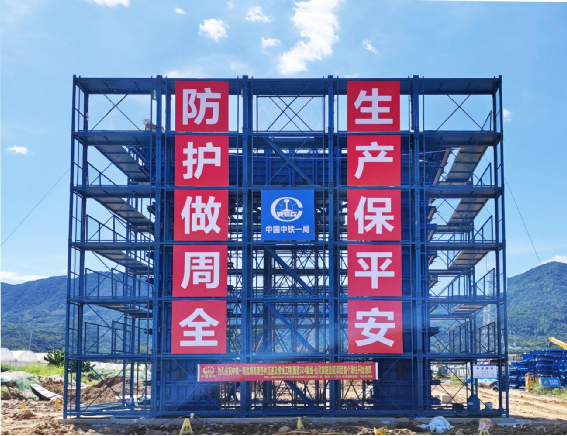 全封閉式墩柱施工防護平臺:全封閉式墩柱施工防護平臺由標準節段框架、封閉防護網、操作平臺、上下爬梯、連接鎖定組件等部件組成,并設置有防墜器、安全繩掛點等安全防護組件,此項技術以“模塊化疊加”為核心,提高墩柱施工安全系數為目的,具有安全可靠、施工靈活便捷、適配性廣泛、周轉率高等優點。