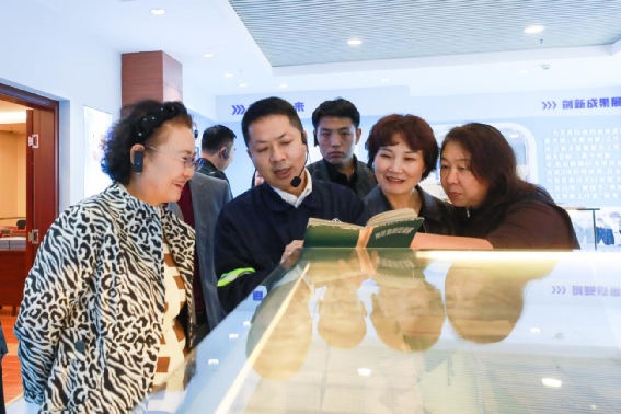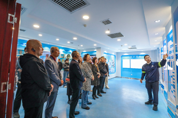觀摩調(diào)研團在全國勞動模范、中華技能大獎獲得者白芝勇的引導和講解下,深入了解了中鐵一局五公司及精測公司的歷史沿革、發(fā)展概況以及在工程建設(shè)領(lǐng)域,特別是在鐵路、公路、橋梁、隧道等方面取得的輝煌業(yè)績,詳細了解了工作室的組織架構(gòu)、運行機制、創(chuàng)新成果以及在高精度測量技術(shù)領(lǐng)域取得的突出成就。其中,基于物聯(lián)網(wǎng)的智能化監(jiān)測系統(tǒng)、小發(fā)明“雙測寶”、物聯(lián)網(wǎng)+無人機+BIM+三維激光掃描技術(shù),引發(fā)了勞模、工匠們的濃厚興趣和熱烈討論。陳列室內(nèi)一項項專利證書、一座座獎杯、一件件實物模型,生動展現(xiàn)了工作室團隊精益求精、勇攀高峰的奮斗歷程,給觀摩調(diào)研團留下了深刻印象。