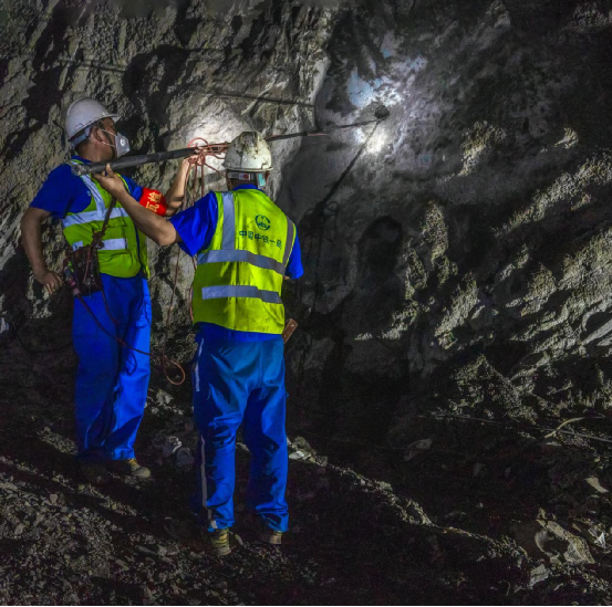 瓦檢員在朱家山隧道橫洞正洞大里程掌子面進行瓦斯檢測