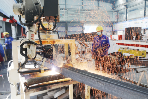 智能鋼構(gòu)廠機器人激光切割鋼拱架——侯若斌攝