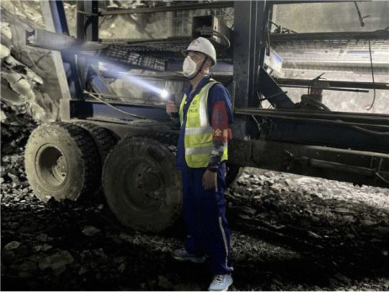 憑借豐富的經驗和扎實的專業知識,譚恢玖每天深入明通隧道施工現場,對每個環節、每個細節都進行嚴格的安全檢查。無論是隧道開挖的支護質量,還是爆破作業后的隱患排除,他都一絲不茍,絕不放過任何一處風險點。他總是最早到達現場,最晚離開,仔細查看施工人員安全防護是否到位,耐心提醒每一位工人正確佩戴裝備。對于發現的違規操作,他從不姑息,立即制止并嚴肅教育,讓施工人員深刻認識到安全的重要性。這份鐵面無私的底氣,源于他對安全規程的爛熟于心,更源于對生命至上的深切敬畏。他用行動證明,安全紅線不容試探,守護的是每一個鮮活的生命和背后家庭的完整幸福。