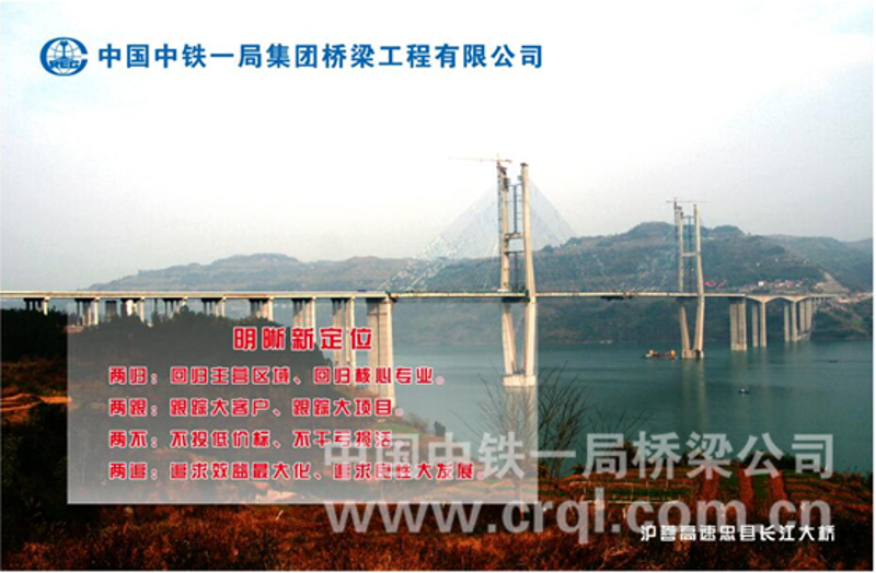 “新定位”是對公司扭虧解困和提質增效工作的目標定位,主要用于指導營銷實踐。具體內容為“兩歸、兩跟、兩不、兩追”。“兩歸”即回歸主營區域、回歸核心專業,指的是回歸重慶、湖北、江西主營區域和全國橋梁施工區域,回歸有著六十多年施工經驗和施工特長的橋梁施工核心專業;“兩跟”即跟蹤大客戶、跟蹤大項目,指的是要適應市場經濟和企業自身需要,與大客戶、大項目的單位建立良好信譽關系和長期合作關系,實現互利共贏;“兩不”即不投低價標、不干虧損活,指的是要從源頭抓起,樹立正確的政績觀、價值觀,投合理標,干盈利工程;“兩追”即追求效益最大化、追求良性大發展,指的是要以盈利目標,確保效益最大化,確保國有資產增值保值,確保企業走向健康發展、職工安居樂業的良性發展軌道。