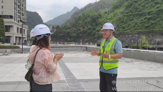 5月15日,城口縣融媒體中心記者到中鐵一局八公司濱河體育公園項目施工現場進行采訪。