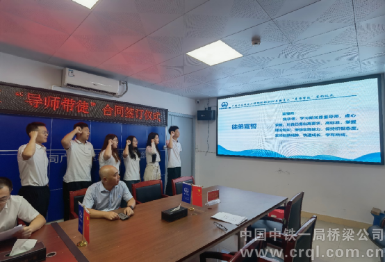 8月13日,在“導師帶徒”合同簽訂儀式上,項目部為6名新員工各自安排了一位專業技術扎實、工作經驗豐富的骨干導師,結成“一對一”的師徒關系,加強對新員工的業務技能培養,更好地發揮“傳、幫、帶”作用。簽約儀式上,新員工及導師共同學習了《見習生管理辦法》,分別進行集體宣誓。