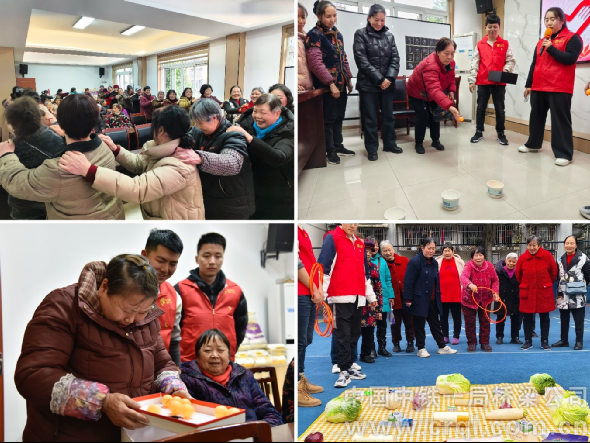 活動(dòng)當(dāng)天,志愿者們來(lái)到位于重慶市渝北區(qū)的人和街道汪家橋社區(qū),在與社區(qū)工作人員詳細(xì)了解老人們的日常需求與生活狀況后,精心策劃了一系列適合老年人興趣的互動(dòng)活動(dòng)。在“健康拍手操”環(huán)節(jié),青年員工與老人們手拉手圍成圓圈,在歡快的音樂(lè)中舒展筋骨;在“夾瓶蓋挑戰(zhàn)賽”中,老人們專(zhuān)注地用筷子夾起瓶蓋,志愿者在一旁加油鼓勁,場(chǎng)面溫馨熱烈。此外,“筷子傳杯”“蔬菜水果套圈”等游戲更是點(diǎn)燃了老人們的熱情,社區(qū)廣場(chǎng)上洋溢著歡聲笑語(yǔ)。