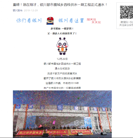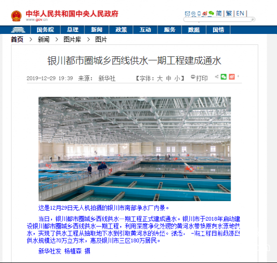 中國政府網報道:銀川都市圈城鄉西線供水工程項目通水