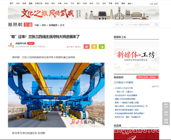 4月3日,新甘肅報道:蘭張三四線鐵路橋梁莊浪河特大橋順利通過連續(xù)梁