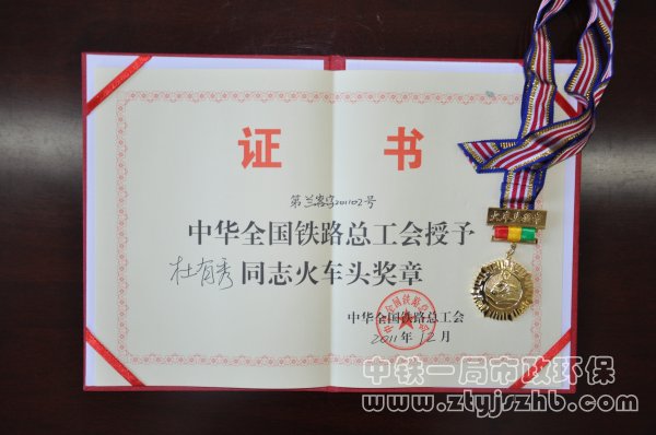 受過何種獎(jiǎng)勵(lì)稱號(hào):2007 年榮獲中鐵一局集團(tuán)公司先進(jìn)個(gè)人、2010年榮獲中鐵一局集團(tuán)市政環(huán)保公司十大標(biāo)兵、2011年榮獲中華全國(guó)鐵路總工會(huì)火車頭獎(jiǎng)?wù)隆?013年榮獲中鐵一局集團(tuán)市政環(huán)保公司十大標(biāo)兵及蘭州鐵路局中川鐵路公司優(yōu)秀項(xiàng)目經(jīng)理、2014年12月榮獲打造全國(guó)一流高鐵示范站優(yōu)秀項(xiàng)目經(jīng)理