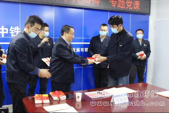 授課前,司西平帶領全體黨員在黨旗下重溫了入黨誓詞。授課后,他還為黨員代表贈送了書籍,為職工發放了保暖衣等慰問品,為一線員工帶去了公司的問候和關懷。