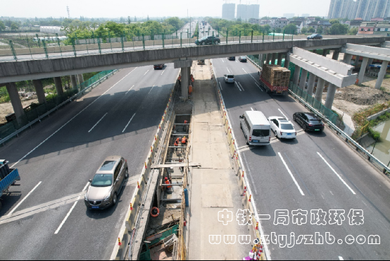 解決遷改難題,打通施工“梗阻”。由于沿線10千伏高壓線沿G320公路架設,并在跨G15高速大橋北側斜跨公路,長期影響該大橋18-20號墩和兩公里范圍內路基基礎、河道擋墻和管道等施工,造成作業面“支離破碎”,面對遷改難題,項目部積極和業主、政府相關部門及產權單位深入溝通協調,千方百計推動遷改工作進程,陸續解決了綠化、電信和管線遷改以及地塊征遷,為施工“擠出”工作面。在電纜線完成遷改后,項目部迅速優化施工組織,采用“多點開花、點線協同”措施全面展開施工作業。