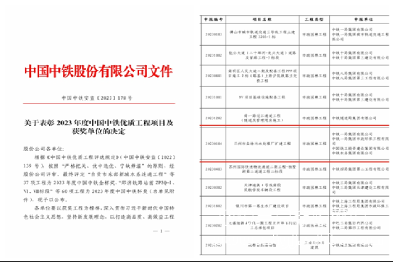 榮獲中國中鐵最高榮譽——“中國中鐵金杯”獎