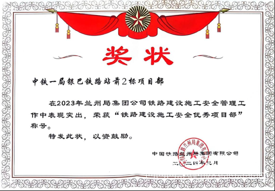 榮獲2023年“蘭鐵建設杯”優秀施工項目部榮譽稱號
