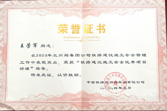 榮獲“2023年度鐵路建設施工安全優秀項目經理部”榮譽稱號