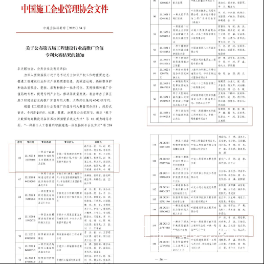 公司三項(xiàng)專利成果榮獲中國施工企業(yè)管理協(xié)會(huì)高推廣價(jià)值專利