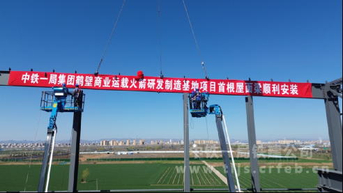 中鐵一局鶴壁市淇濱區(qū)商業(yè)運載火箭研發(fā)制造基地項目首根大型鋼結構主梁成功吊裝