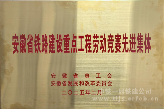 2月25日,中鐵一局滬寧合項目部在安徽省2024年度鐵路建設重點工程勞動競賽評比中,獲得“全省鐵路建設重點工程勞動競賽先進集體”榮譽稱號,是全線唯一獲此殊榮的單位。