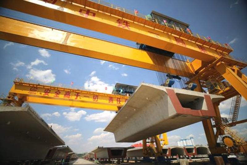 從2016年9月10日進場以來,7天完成400余畝征地任務,11天完成試驗室儀器標定校驗工作,45天成功預制首孔箱梁,2017年1月22日,梁場以優異的成績一次性通過國家生產許可認證審查。3月底,梁場最高日產達到5孔,現在,梁場正以每天預制6孔梁的速度向前推進。