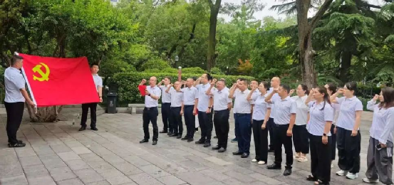 參觀結束后,全體黨員在宣誓廣場整齊列隊,面向鮮紅的黨旗,高舉右拳,莊嚴重溫入黨誓詞。鏗鏘有力的誓言響徹廣場,彰顯了黨員們堅定的理想信念與強烈的使命擔當,讓初心和使命在心中再次扎根。