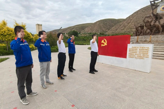在西北分公司現場相關負責人的帶領下,雙方黨員面向黨旗,高舉右手重溫入黨誓詞。隨后,大家前往了古浪戰役紀念館。該館曾是紅軍西路軍古浪烈士陵園,如今是中國紅色旅游經典景區、甘肅省中共黨史教育基地以及甘肅省愛國主義教育基地。在身處這樣一個莊重肅穆之地,雙方黨員同志認真參觀學習,并合影留念。