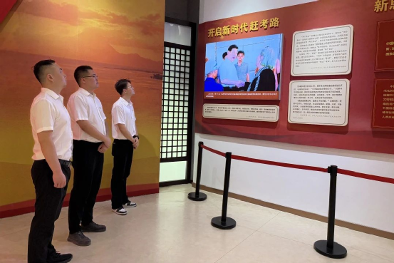 在講解員帶領下,黨員們通過參觀珍貴文物、歷史照片、場景復原等載體,深切感悟革命先輩“從群眾中來 到群眾中去”的智慧與“為人民服務”的赤子情懷,以及老一輩革命家矢志不渝的革命信念和崇高品格,黨員們進一步堅定了理想信念,強化了責任擔當。隨后,兩家單位負責人帶領大家在莊嚴黨旗下重溫入黨誓詞,緬懷革命先烈,傳承革命精神,凝聚奮進力量。