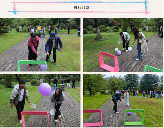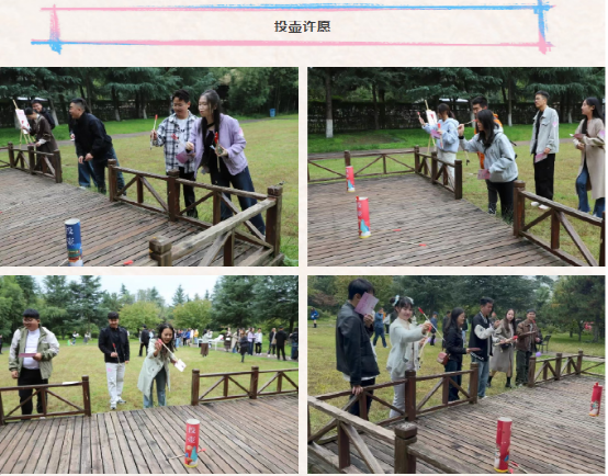 午后時(shí)光,趣味十足的“心動(dòng)大闖關(guān)”正式開啟。“投壺許愿”、“勝利歸巢”、“你比劃我猜”、“你的聲音我的方向”四項(xiàng)挑戰(zhàn)依次展開。青年們兩兩結(jié)對(duì),或屏息瞄準(zhǔn)投壺、或持扇趕球歸巢,或用動(dòng)作傳遞詞語、或憑聲音指引方向,配合間的默契與信任不斷加深,每完成一關(guān)獲得的印章,都成了彼此交流的新話題。