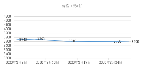 2020年8月份國內建筑鋼價以震蕩為主,下圖為西安地區螺紋鋼HRB400EФ20mm價格走勢。