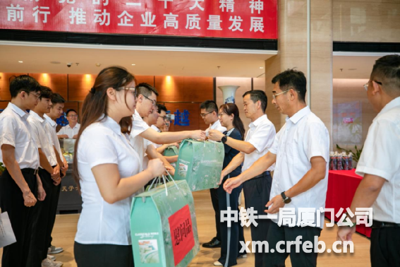 儀式結束后,公司領導為新員工發放空調被、運動水杯等慰問品,切實關懷新員工,并合影留念。