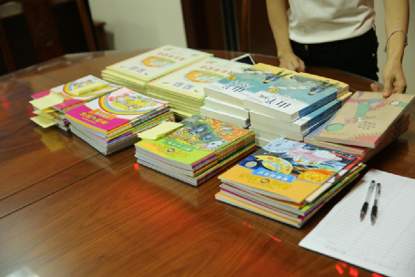 “書韻飄香,伴我成長”,第一個亮點活動便是為孩子們授書。上午八點半,孩子們都捧到了工會主席任崇華為他們發放的圖書。據悉,此次圖書按照幼兒、兒童、初中分類,每一位兒童都能領到兩本精致的圖書。任主席表示:希望孩子們從圖書中汲取營養,早日成為祖國的棟梁。